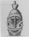 #449. Carved design, anthropomorphic, on elbowed [?] axe haft