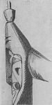 #742. Carved design, anthropomorphic, on elbowed [?] axe haft
