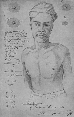Caption: "Lagua with two pairs of nipples from Denama village, Seram Island. Kilvaru. 14 May 1874"
