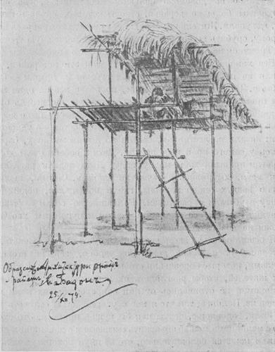 Caption: "Hut of Oran-Rayet in Badon. 25 December 1874"