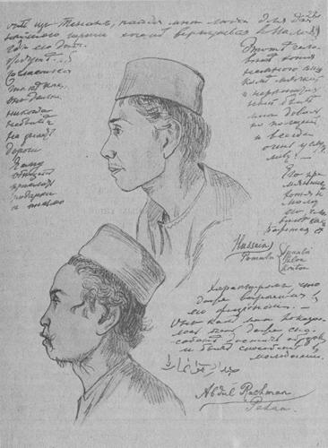 Caption: "Malayans - pomulu Hussein and his nephew Abdul-Rachman"