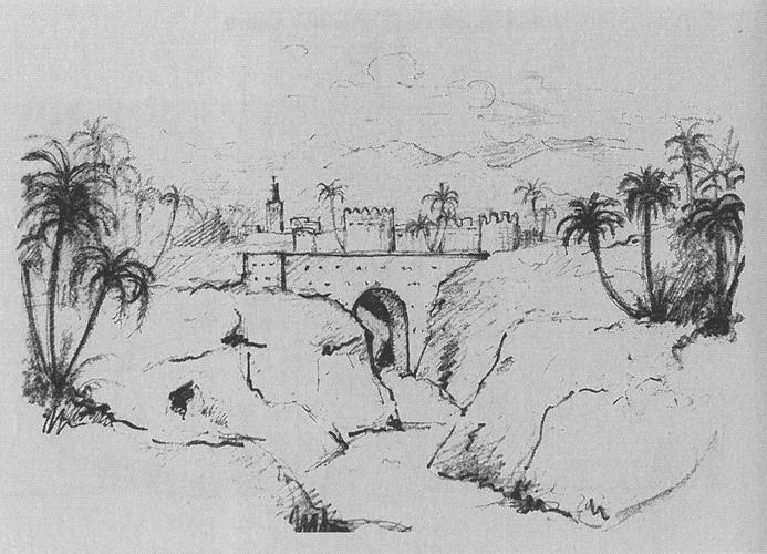Caption: "View of Morocco town (Marrakesh)"