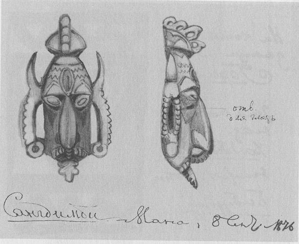 Caption: "Wooden mask. Sangdimbi-Mana (Sandingbi-Mana) village"