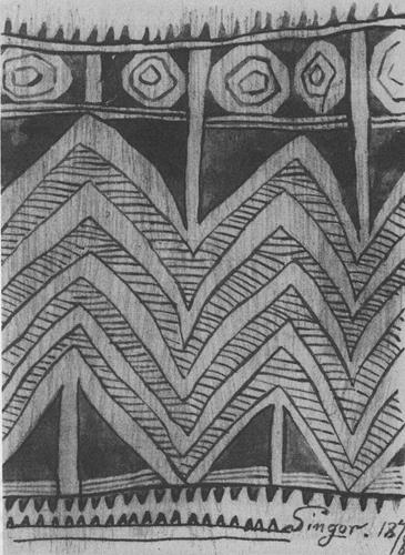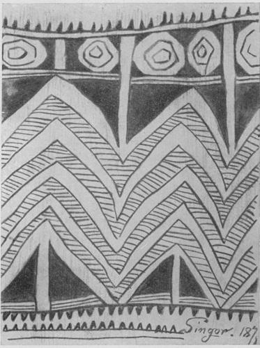 Caption: "Ornament on a bamboo case. Singor village"