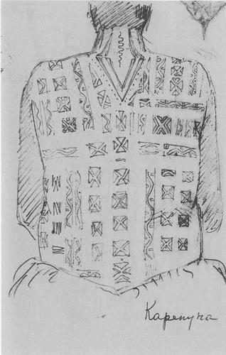 Caption: "Back tattoo on a woman. Karepuna village"