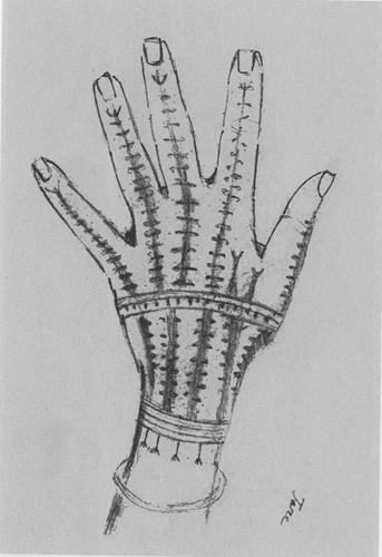 Caption: "Left hand of Tare with tattoos"