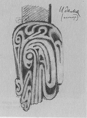 Caption: "Carving on the end of an oar (?). Anuapata village"