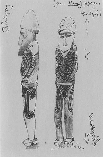 Caption: "Sculpture of an ancestor. View from the side and front. Epi Island."