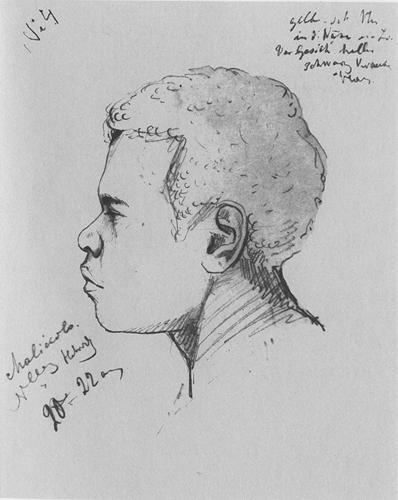 Caption: "Man from Malekula Island, 20-22 years old. Drawn on Tahiti in 1871."