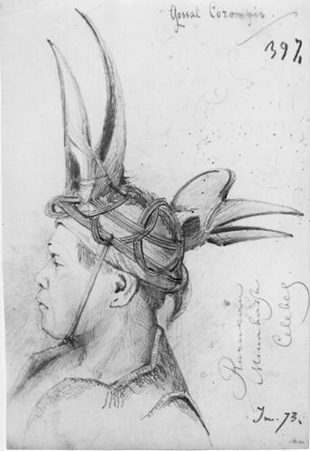 Caption: "Warrior's headdress. Rurukau village, Minahasa Province"