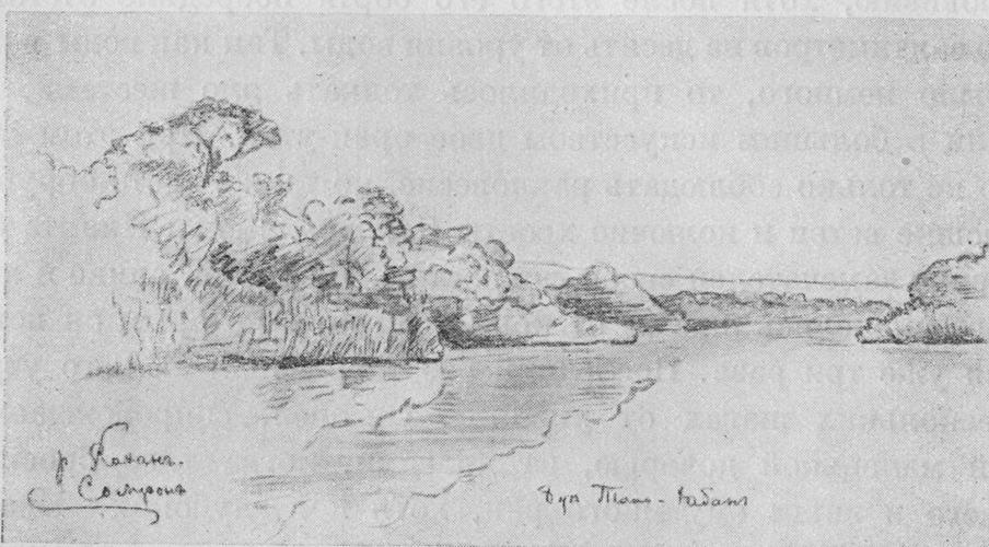Caption: "River Kakhan-Sombron. Bukit Tana-khaban"