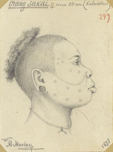 Marginalia: Orang Sakai woman, circa 20 an. (Kalantan). M-Maclay. 1875