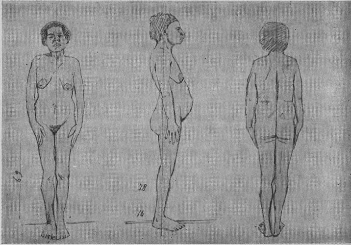 Caption: "Clara from Ternate Island. Amboina Island. 8 February 1874. Height: 146 cm; height of head: 19 cm; width: 14 cm"